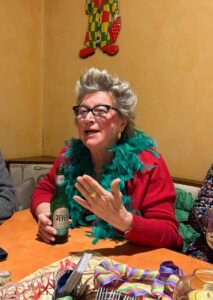 eine „Dame“ mit giftig-grüner Federboa
